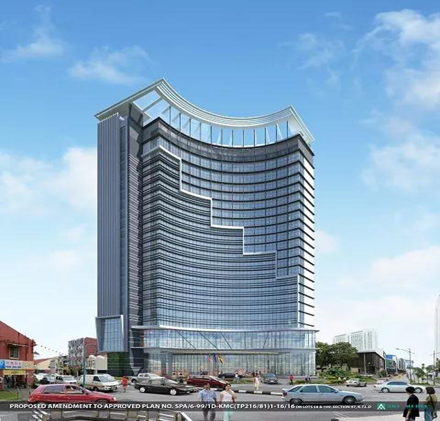 古晉喜來登酒店項目,位于馬來西亞沙撈越洲古晉市中心,總建築面積約4.1萬平方米,建築高度約110.76m(建成後将會是沙撈越最高建築之一),地下2層,地上22層。