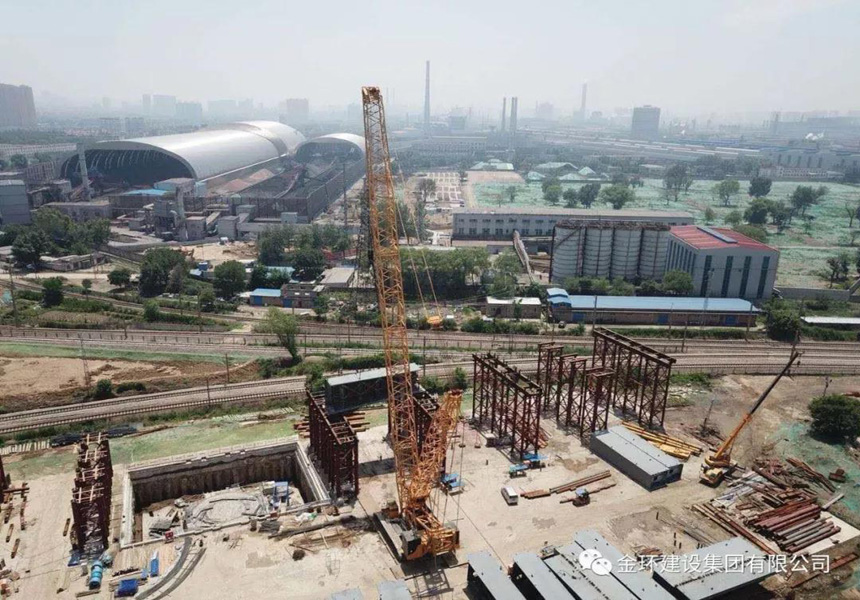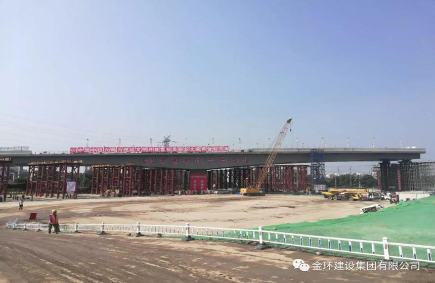 新店街建設工程是山西省太原市重點市政工程。該工程的建設将進一步優化提升太原市城區路網結構,打通城區北部東西向快速通道,完善城市北部功能、提升城市品質,形成以太原為中心的一小時經濟圈,帶動沿線地區土地開發,促進太原市經濟發展、城市現代化建設以及推動城市社會經濟快速發展均具有重要意義。金環建設集團橋梁公司承建本工程中新店街主線跨越鐵路線鋼箱梁T構轉體橋施工是首個控制性節點工程。