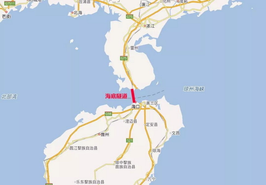 2018年7月,國家海洋局主管的《中國海洋報》刊發消息稱,瓊州海峽跨海隧道有望開建,并透露該工程已向國家發展和改革委員會申請立項。還稱:“該隧道連接雷州半島和海南島,西連北部灣、東接南海北部,是一條公路和鐵路兩用的跨海通道。隧道總投資額超過1500億元。