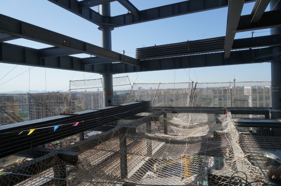 項目現場展示了金環鋼結構安裝操作平台、采光頂安全防護網等安全防禦措施。通過設立“生命線”安全繩、塔吊預警裝置、磁力緩降裝置、防墜網、懸挑防護網欄、懸挑腳手架等安全設施裝置的應用,東南智彙城項目部大力推進“安全生産”理念,提升項目安全保障能力,有效的保障了施工人員的生命安全,為廣大施工人員築起一道牢固的安全屏障。