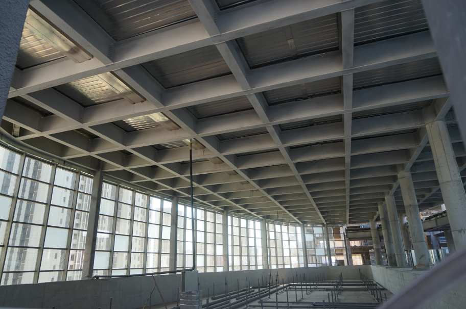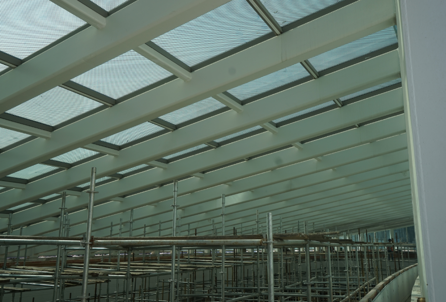 ▼商業綜合體2号采光頂為弧形結構,最大跨度43米,曲面造型呈現鋼結構的力與美