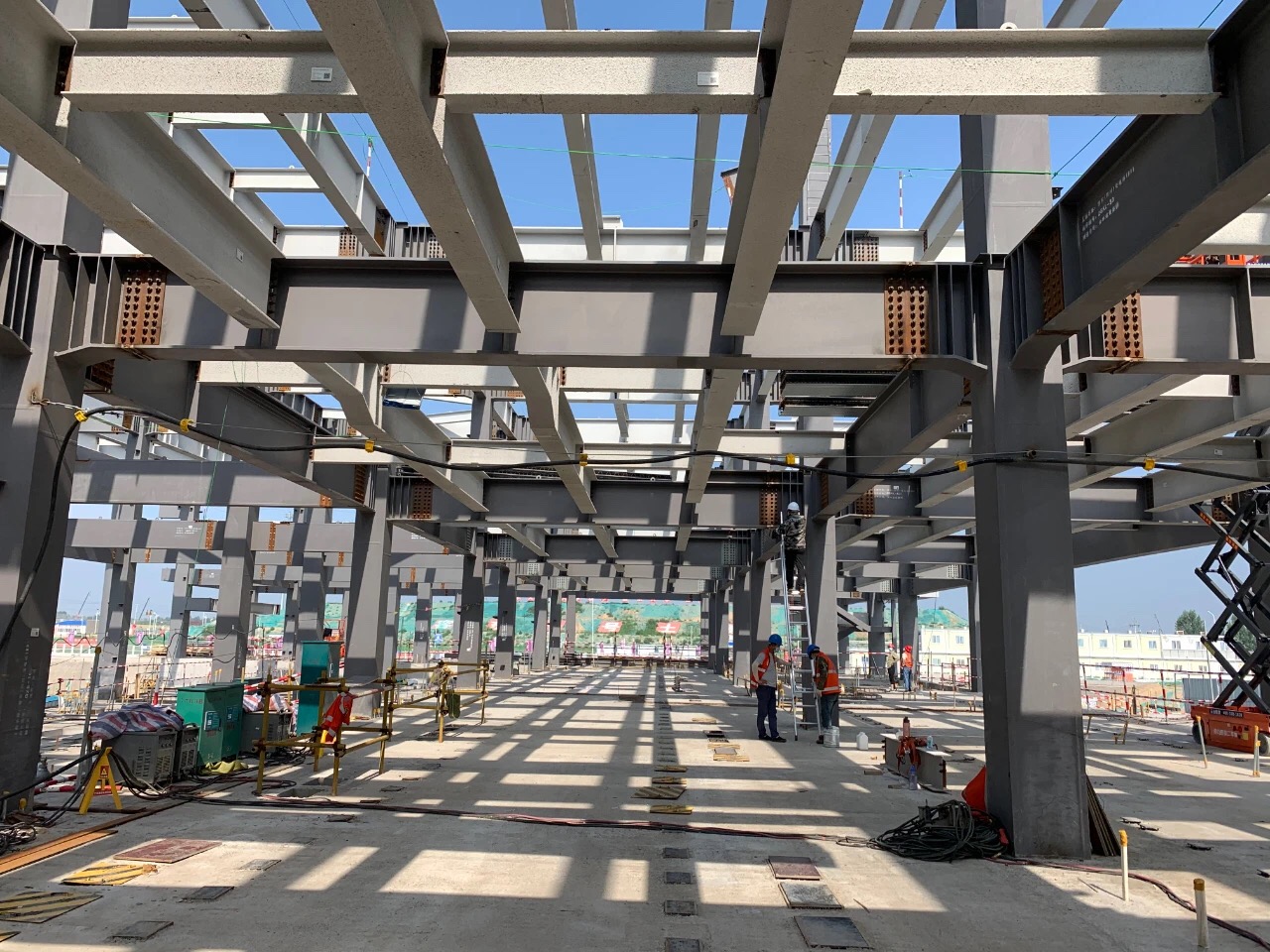 變電站設計融入城市總體規劃,開放變電站屋頂與周圍空間,實現與周圍綠地公園和諧共享、空間資源充分利用,因此項目規劃了連廊和亭子等公共設施,也是由鋼結構打造。下一步将投入到連廊和亭子等公共設施鋼結構的安裝工作中。