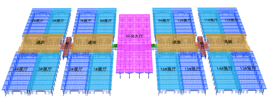 ▼ 交通連廊主要是由屋蓋和内部附屬結構組成,内部附屬結構為兩層或三層鋼構件結構。