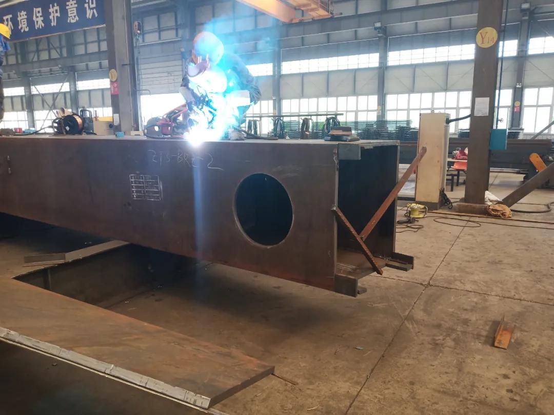 中央大廳的傘頂部分結構複雜多樣,鋼闆厚度較薄,零件繁多,焊接變形難以控制,加工難度大,給制作車間帶來十分嚴峻的挑戰。為了提高構件質量和精度,一線工人嚴格執行質量和标準要求,從下料、組裝、焊接等每一道工序嚴把精度控制,高标準完成每批次的加工任務。