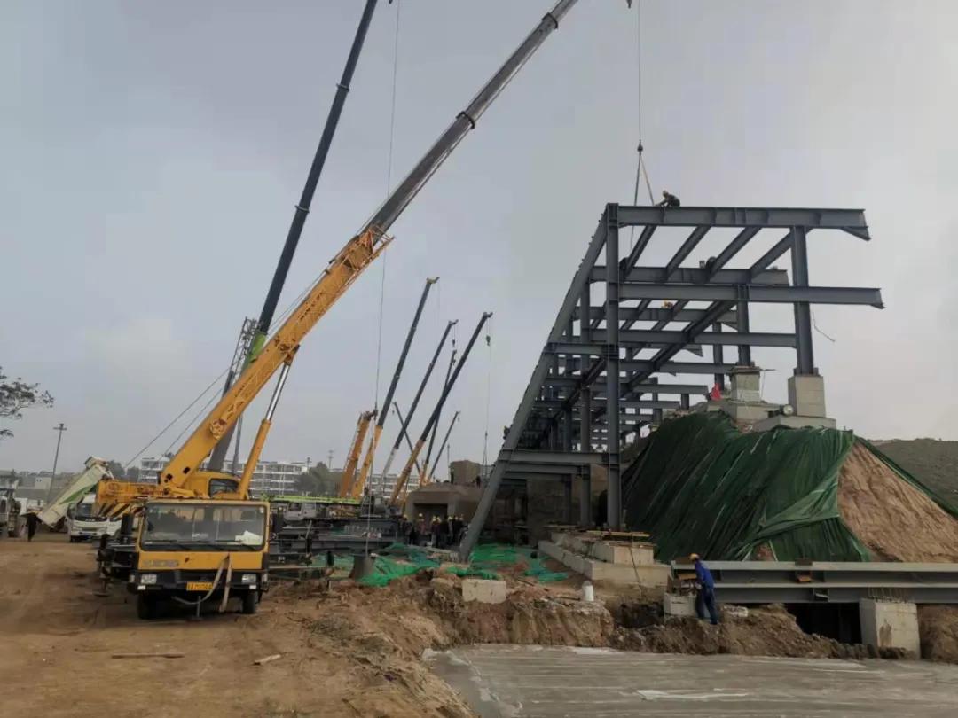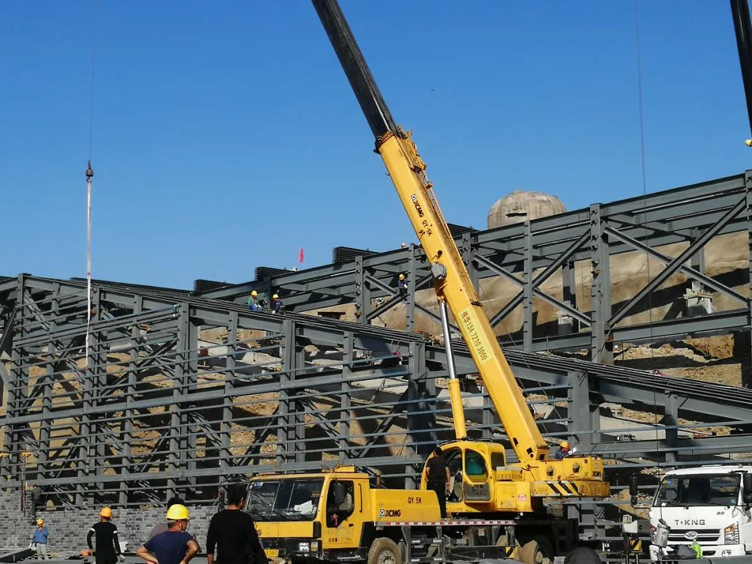自2019年12月,金環建設集團作為總包建設聯合體單位之一,承擔起正定東城門遺址保護與風貌恢複工程項目中鋼結構生産和施工工作,主要涉及主城牆和月城鋼結構工程,包括地腳螺栓、鋼柱、鋼梁、支撐、樓承闆、牆面龍骨、垛口等構件。工程建築面積約13800㎡,主體結構為鋼框架結構,用鋼量2000餘噸。