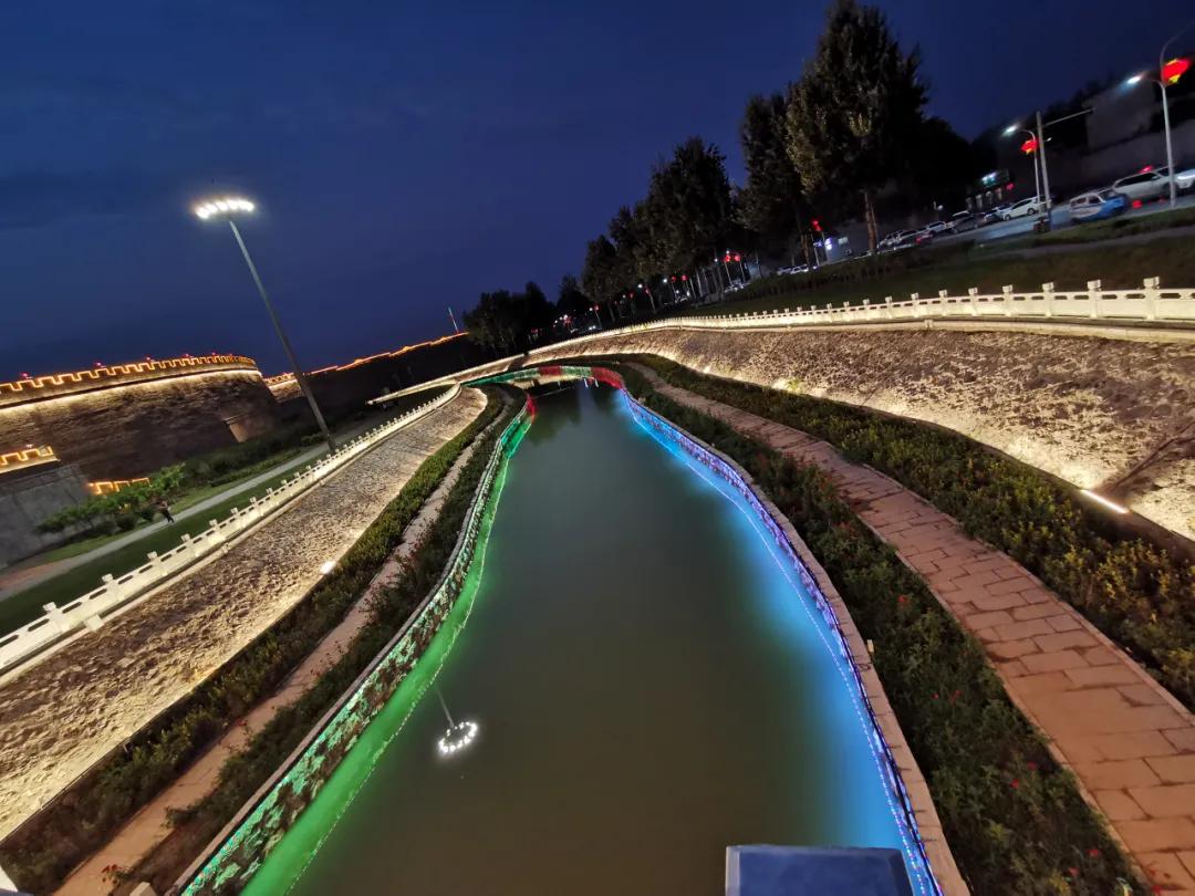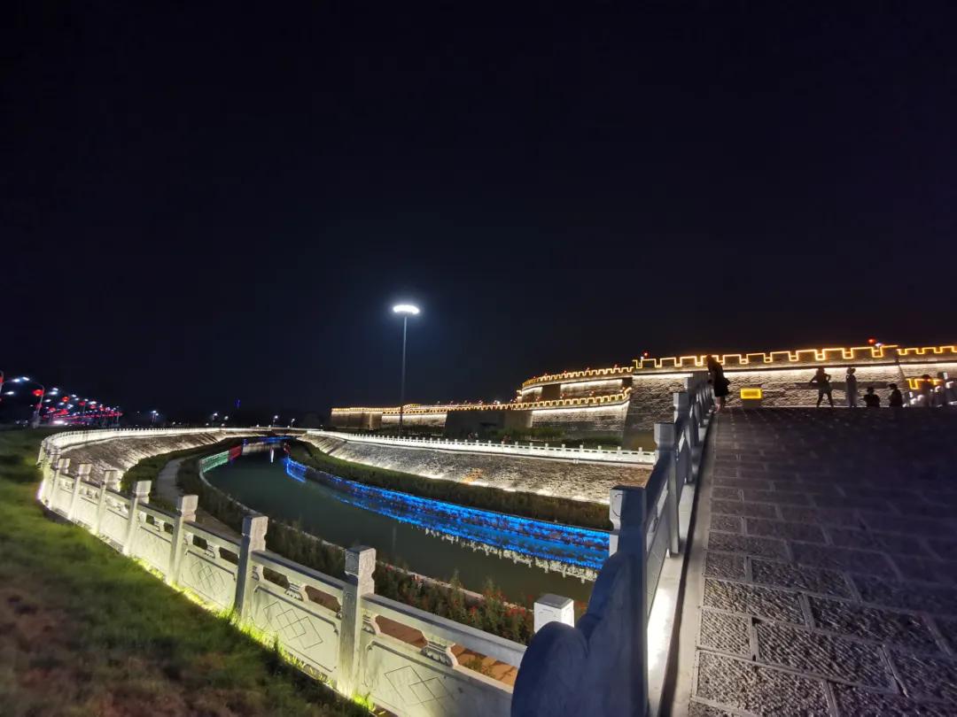 城牆、城樓、護城河上閃爍起靈動的燈光,