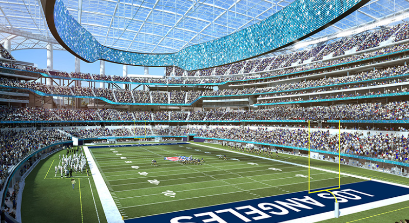 洛杉矶體育場建成後,将成為美國著名橄榄球隊洛杉矶公羊隊(Los Angeles Rams)和洛杉矶閃電隊(Los Angeles Chargers)的新主場,可容納10萬名現場觀衆,承載了一衆粉絲的期待!