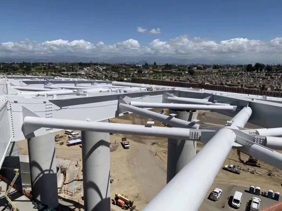 在實際操作中,針對不同構件的結構尺寸、裝配尺寸的偏差,控制在了1-2毫米以内,構件組裝時法蘭對接貼合面的間隙控制在1毫米以内,螺栓穿孔率達到99%,超過了美國業主的期待。