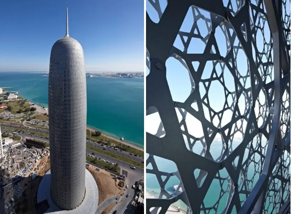 卡塔爾地标性建築,金環負責制作安裝了大廈的筒體編織柱鋼結構穹頂。