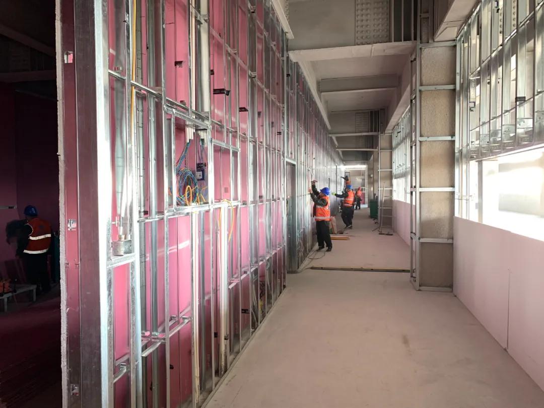 目前項目現場的鋼結構主體已全部安裝完成,正在進行檩條及外牆闆安裝。