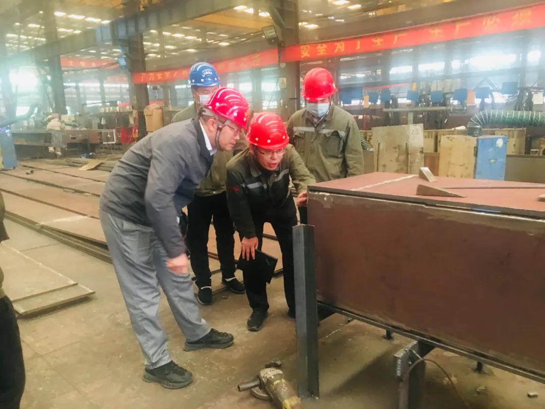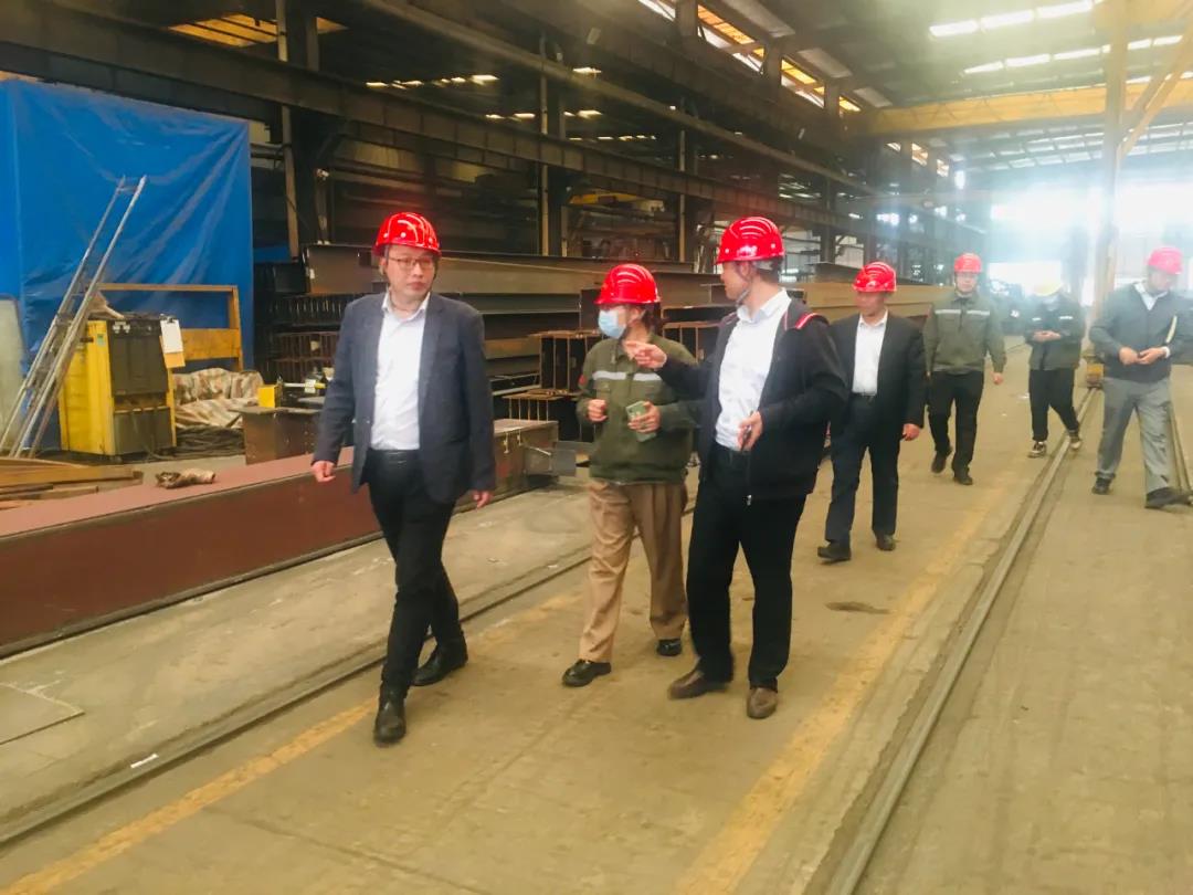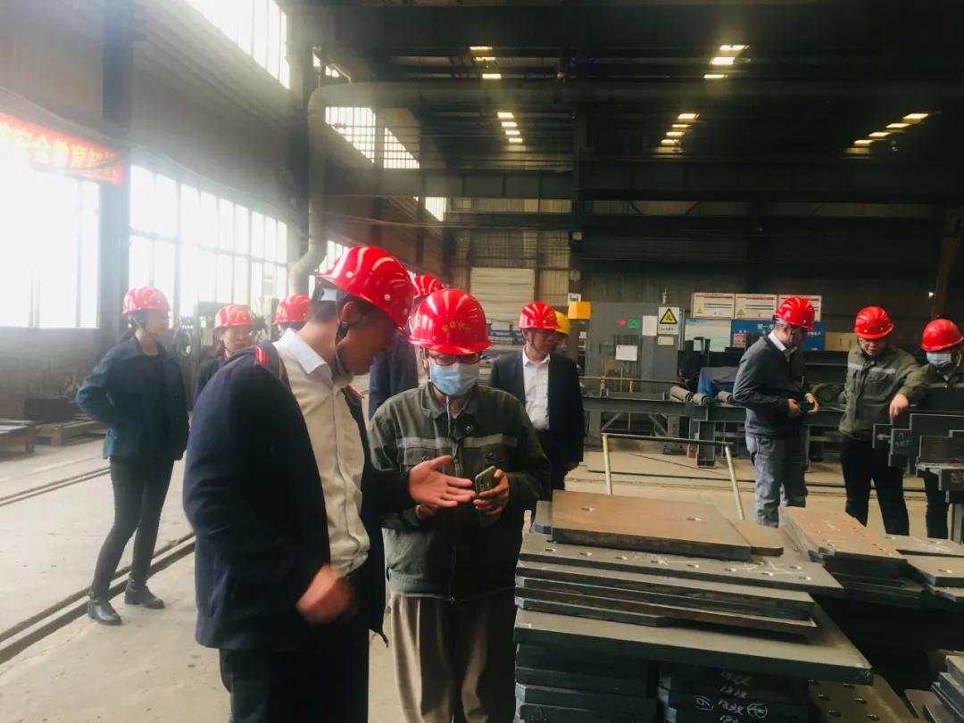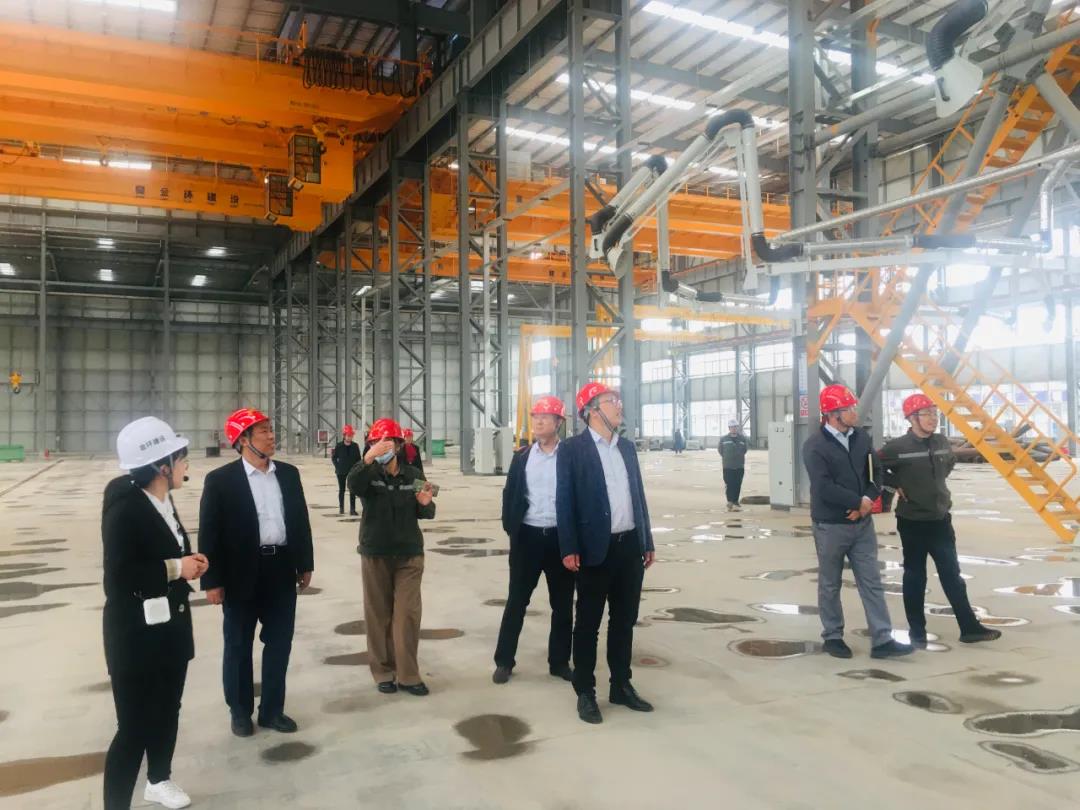 座談會結束後,港航安裝公司一行領導來到金環建設集團石家莊工廠。在生産現場,他們參觀查看了各項生産流程、生産設備和構件産品,實地感受金環的生産制造組織安排和質量控制措施。
