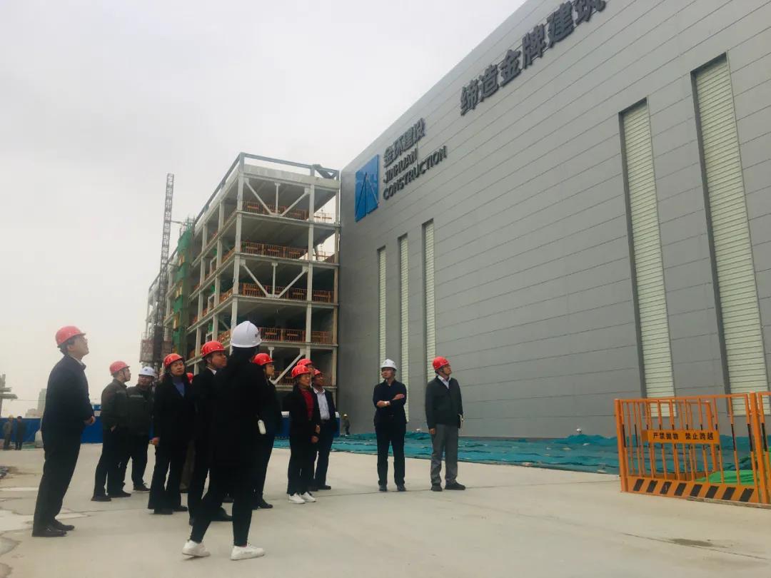 随後,港航安裝公司一行領導來到了金環建設集團石家莊新廠區,分别參觀了正在建設中的2棟裝配式研發辦公樓和即将建成投産的3座廠房,了解裝配式體系、技術工藝、材料特色等方面情況。