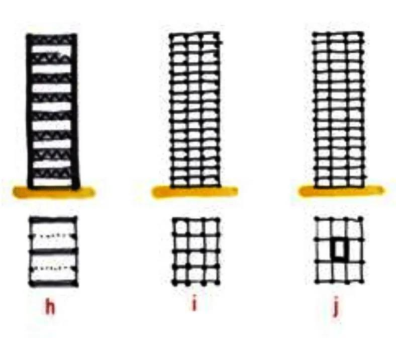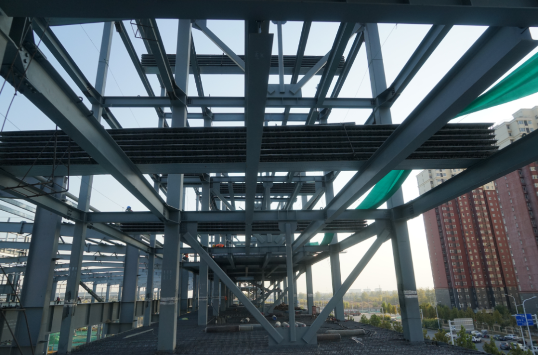 從整體上看,在豎向平面上,每隔一層設置桁架;在橫向平面上,相鄰框架的桁架在上下層間交錯布置,這就是我們說的“交錯桁架鋼結構體系”。