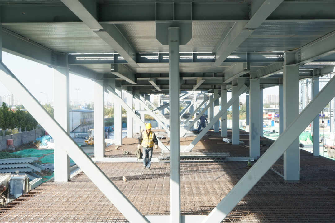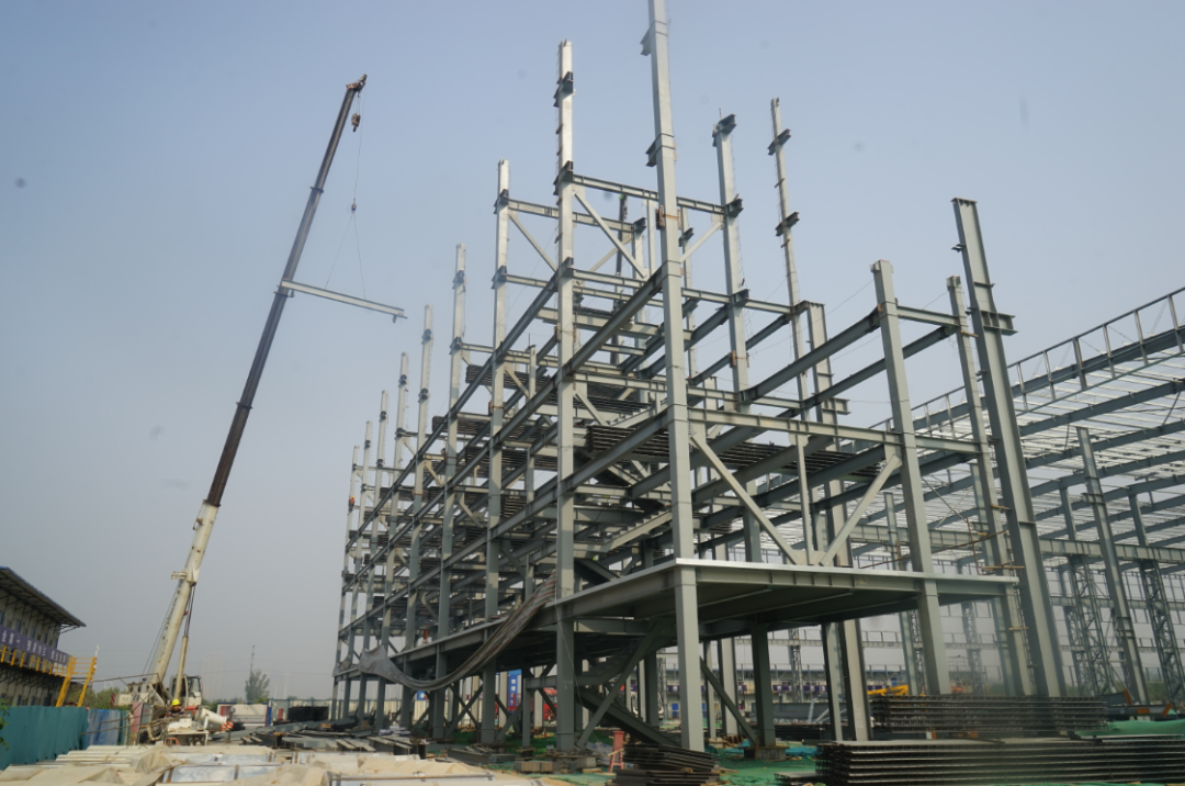 而這次,在金環建設集團石家莊裝配式研發生産基地(新廠區)研發辦公樓建設過程中,我們大膽采用了這種目前在國内還比較少見的交錯桁架鋼結構體系。這次選用的交錯桁架鋼結構體系,是來自于重慶大學為我們做的設計方案,該體系也是周緒紅院士最早在國内研究和推動的新型建築結構。這種鋼結構體系具備了結構形式簡單、施工“短、平、快”等優點,最重要的是節省空間,非常适用于我們新廠區辦公樓“長條形”的占地空間規劃。