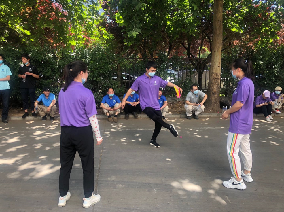 在“毽球”、“無敵風火輪”比賽中展示默契與配合。