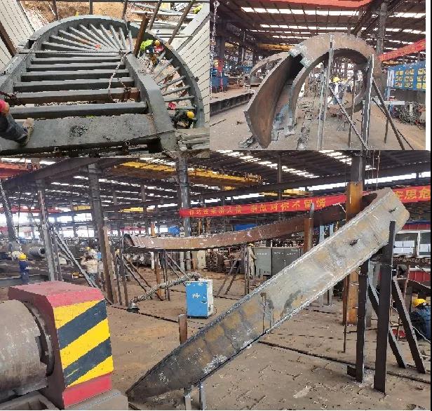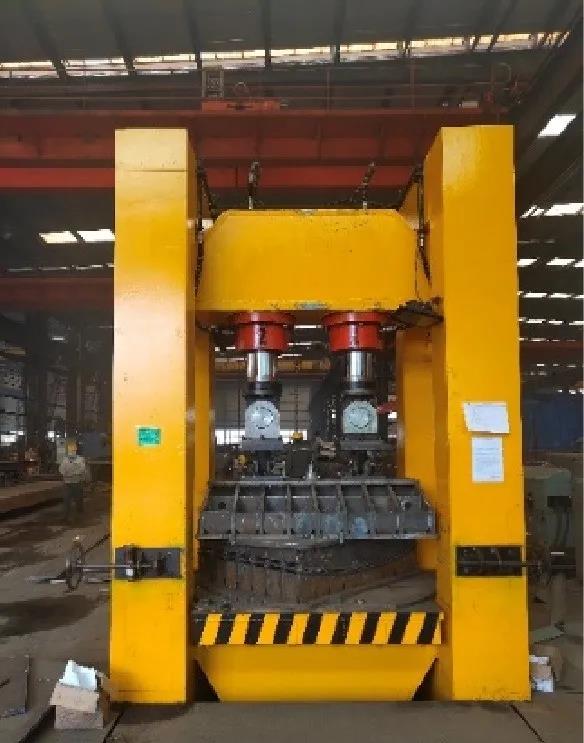 公司利用相關技術,研制了640噸雙頭裝配式轉模壓力機設備荷載産生壓力為320噸/缸*2缸。設備适應于壓制空間扭曲箱型鋼結構或空間扭曲焊接異型鋼結構的640噸雙頭轉模壓力機,能滿足闆材加工範圍為:闆材寬度在400~1500mm,闆材厚度在3~40mm,闆材長度不限,闆材壓制弧度不限的施工設備裝置。
