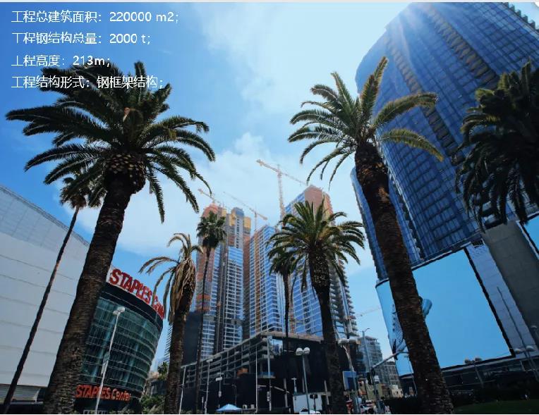 ▲圖為金環承建美國洛杉矶體育場項目,洛杉矶體育場上部屋蓋為大跨度張弦結構,屋頂東西長538m,寬287m;中間拉索空間長軸為306m,短軸為235m;屋蓋面積約20萬平方米。該項目屋蓋結構造型較為複雜,屋頂結構由扭曲構件組成的空間殼體結構和中部空間拉索結構組成。結構的現場安裝以高強螺栓連接為主,構件加工精度要求較高。