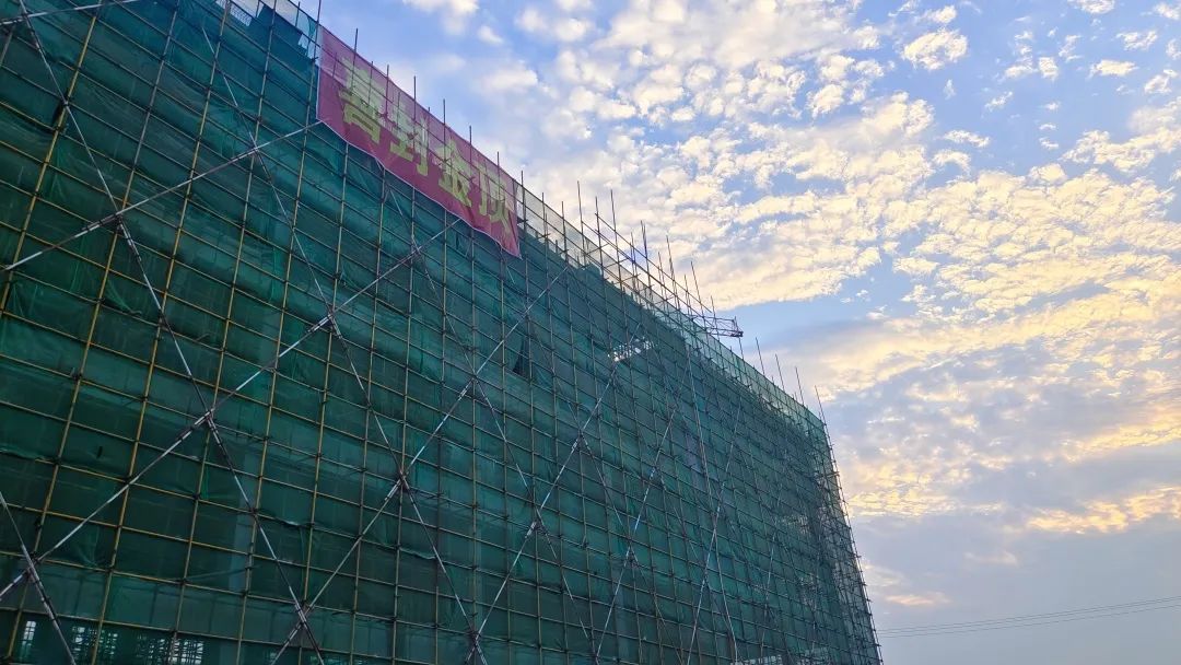 自今年3月28日項目進場開工以來,金環建設集團項目部瞄準施工生産任務目标,嚴格落實安全生産責任制,紮實有效做好疫情防控工作,同時加大對重點施工内容所需機械、人員配置,在保證生産質量的同時,趕工期搶進度,曆經6個月完成科創樓、标準化廠房主體結構封頂。