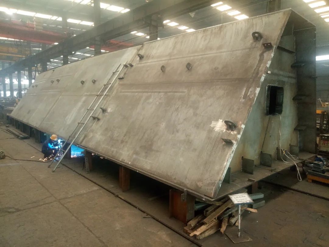 1、鋼塔節段采用厚闆單箱室結構,焊縫密集、焊接量很大,且結構組裝精度控制難度大、穩定性差,焊接變形控制難度非常大。因此,鋼塔厚闆焊接質量及焊接變形控制是制作難點和關鍵點,生産效率也面臨極大挑戰。