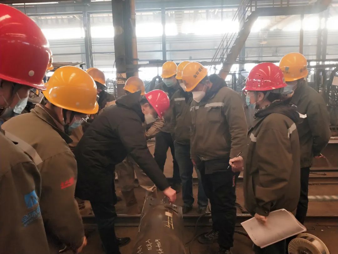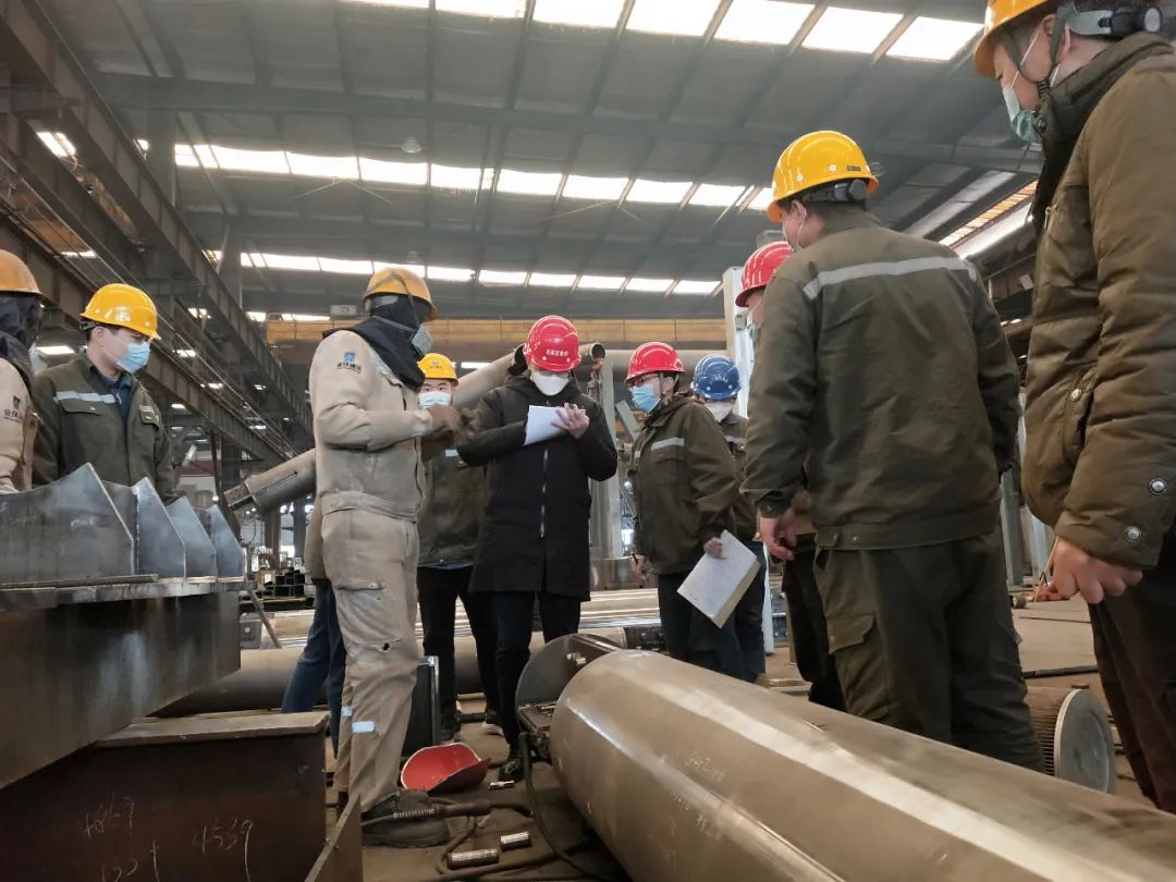 在資料審查階段,專家組仔細查閱了焊工證及焊工報告、技術評審、圖紙變更會審記錄、檢驗計劃及質量記錄( UT,VT)、不合格報告、客戶投訴處理記錄,焊接設備校驗記錄等文件。金環建設集團石家莊工廠質控部部長姚海玲,針對一些重點問題進行了介紹和解答。