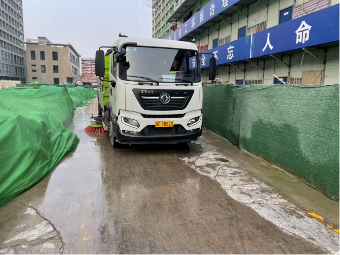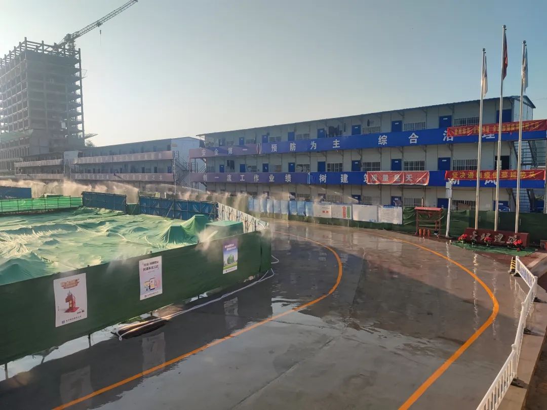 項目設置了整潔美觀的封閉圍擋,自動化車輛沖洗設備,主要道路設置硬化處理,裸土采用防塵網全部覆蓋,現場配置灑水車以确保環保達标。由于揚塵治理工作突出,項目部還被評為揚塵治理标準化工地。