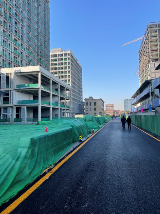 施工現場總體布局管理科學規範,建築物外部進行封閉式圍護,防護嚴密,美觀實用。在施工現場施行人車分流,進行科學布局,保證施工人員安全;同時,在現場設置臨邊防護,保證施工安全。