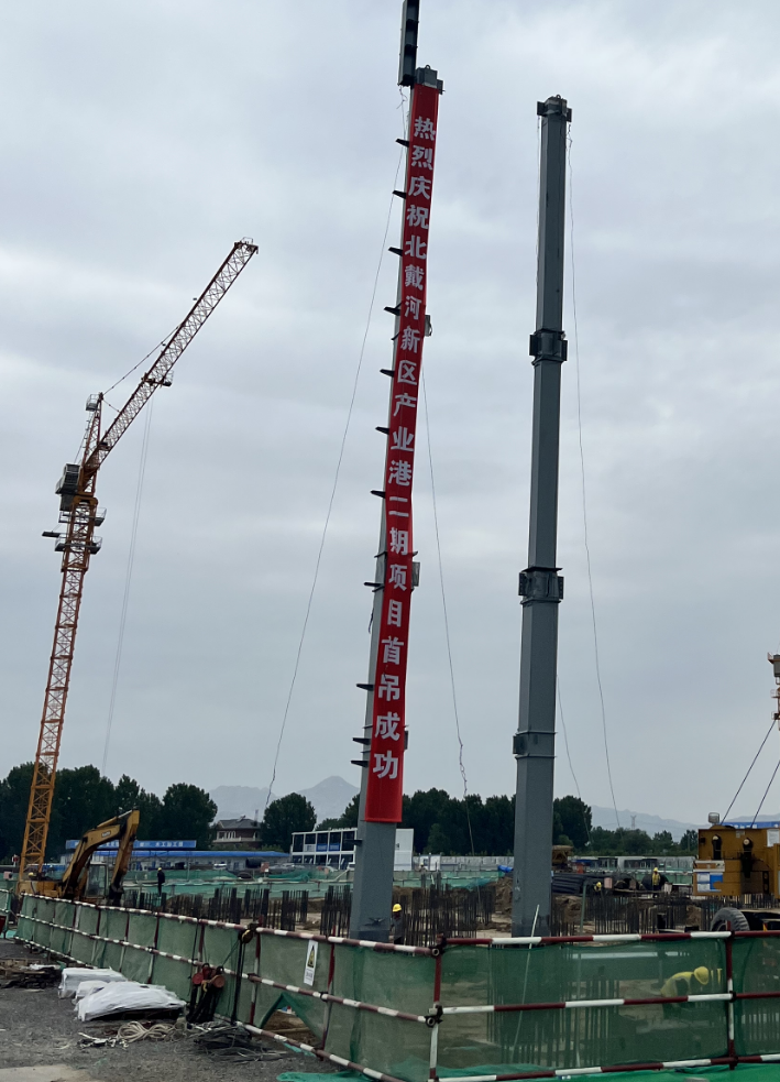 5月30日,在多台起重機械設備精密配合下,經過吊裝、轉體、就位等一系列工序,長達18米的預制鋼柱成功按照既定目标點成功首吊并安裝。首吊成功後,本項目正式進入全面建設階段,後期施工作業條件将日趨完善,施工進入加速階段。後續施工将按照工程進度及質量标準,安全施工建設,争取項目早日建成。