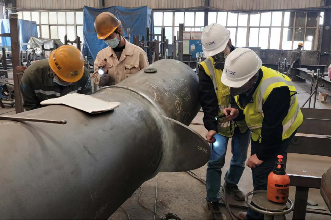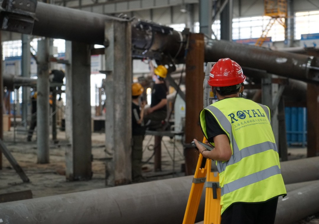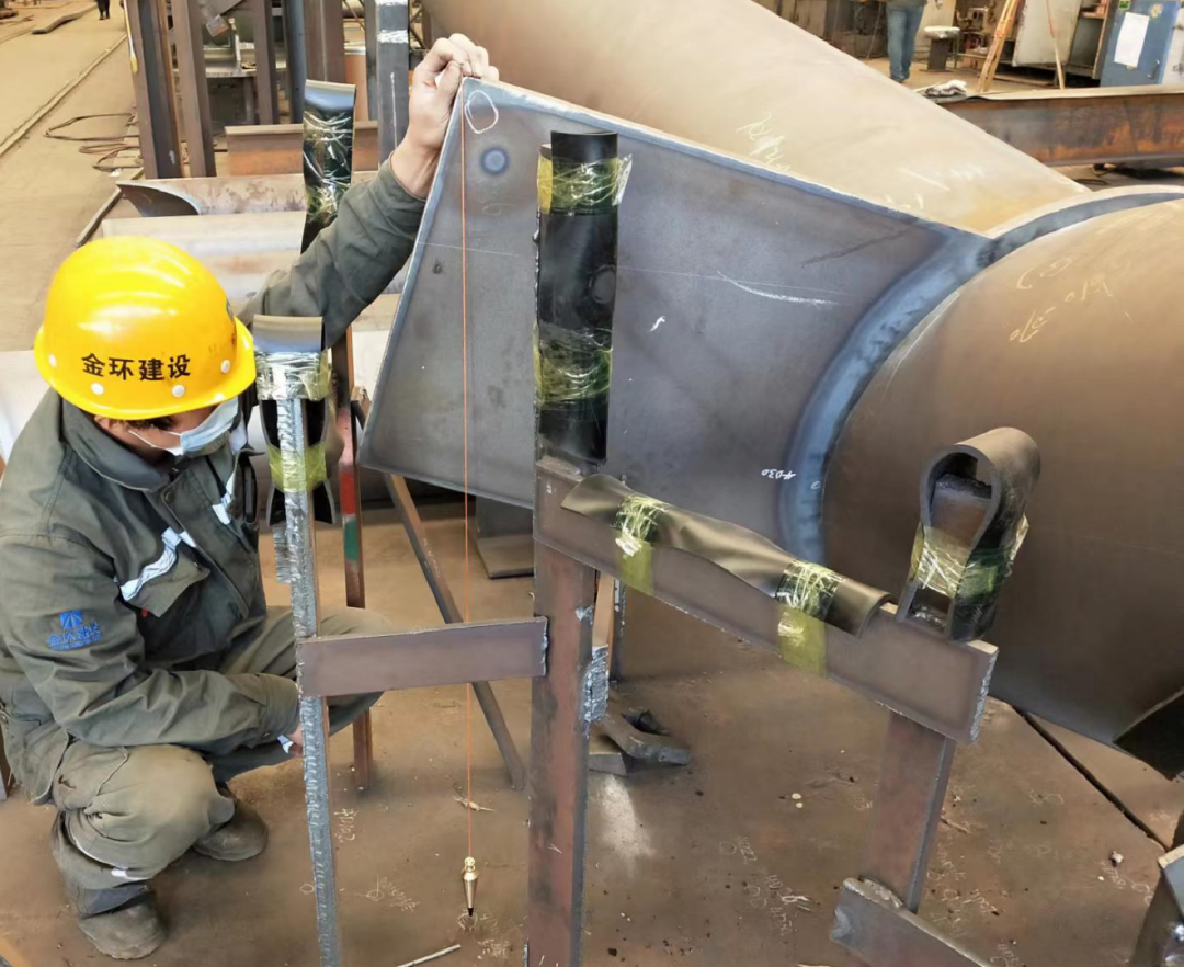 ▼預拼裝:為确保加工精度,在車間現場進行軸線和分片預拼裝。