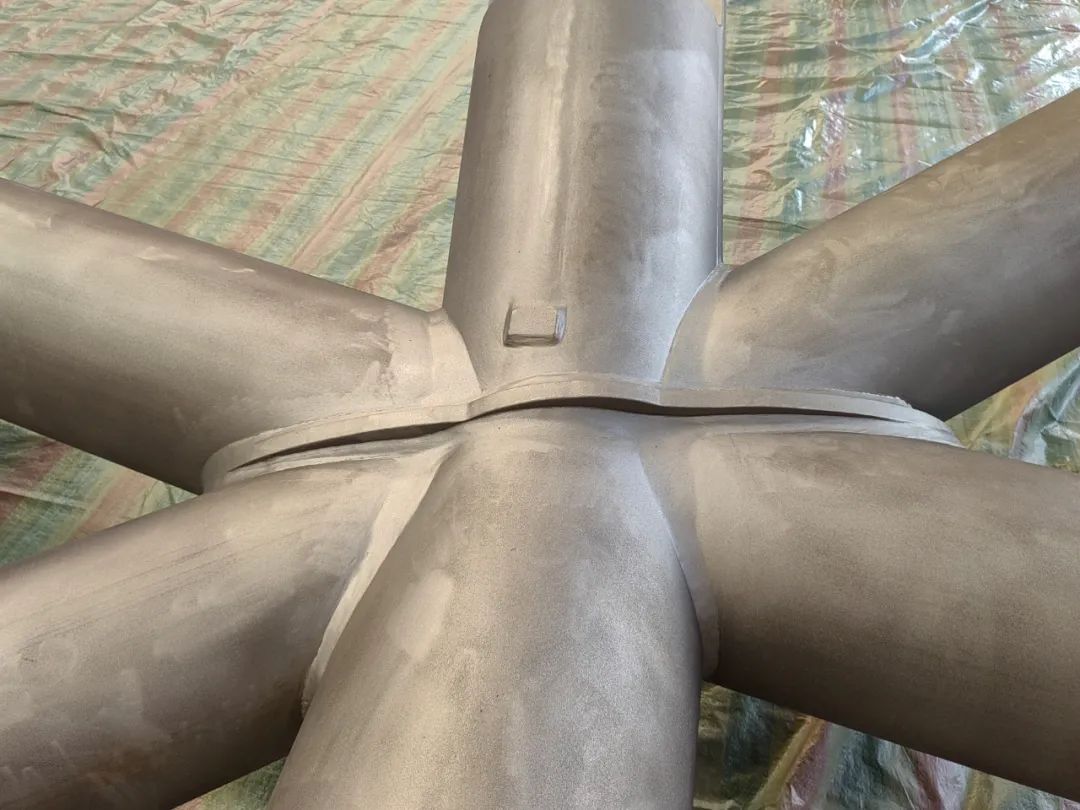 ▼噴砂除鏽:嚴格按照規範要求進行噴砂除鏽。下圖為AESS構件除鏽後的完成效果,可以看到,構件表面光滑亮澤,連接節點平整順滑,整個構件渾然一體,幾乎看不到焊縫的存在。