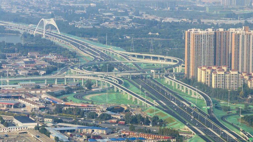 行駛在這座立交橋上,縱橫交錯的匝道通四方,非常壯觀。這座被稱為“超級”立交橋的渦輪複合式互通立交,極大提升了道路轉換高效,展示出了現代化中國道路交通設計和建設的高超水平。