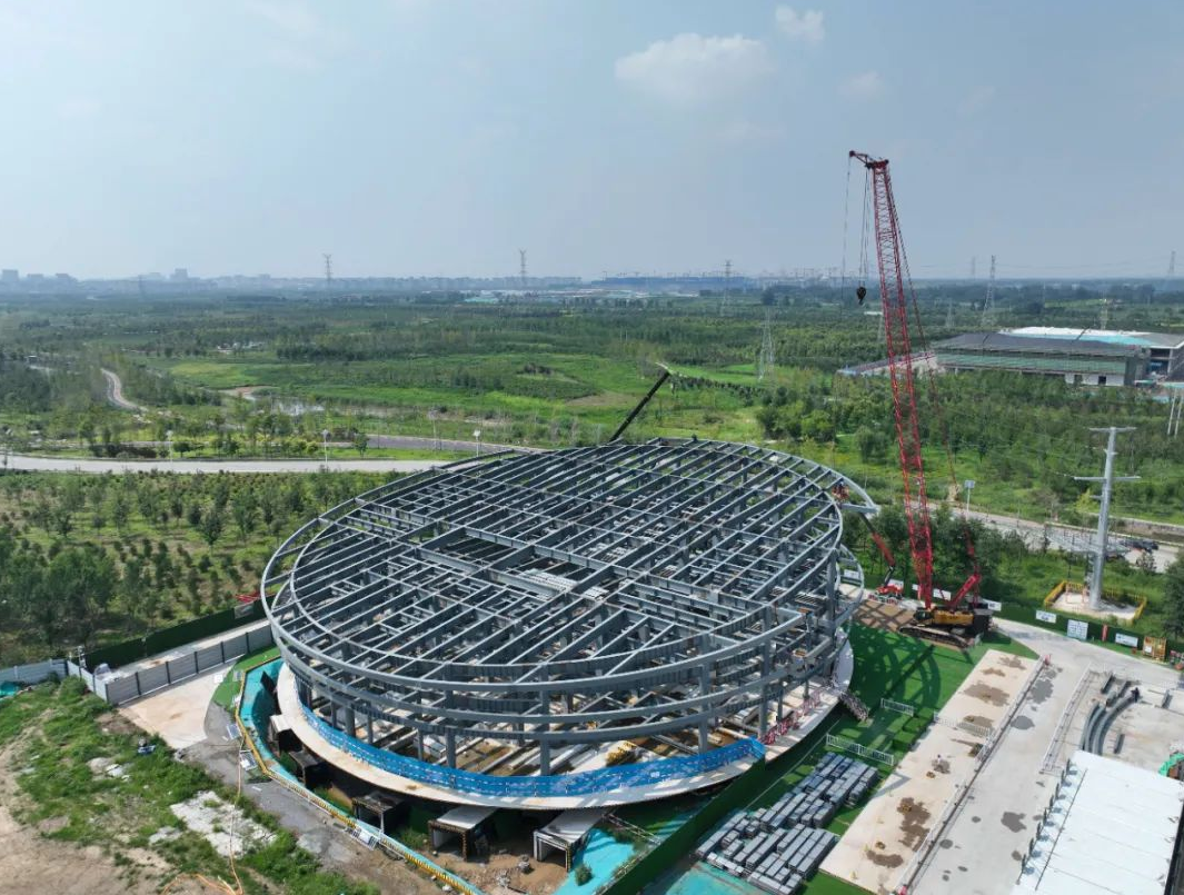 複興220千伏變電站是雄安新區啟動區首座獨立220千伏變電站,也是全國首座圓形鋼結構變電站。該項目鋼結構加工和安裝各項标準要求較高,曲面梁安裝精度控制難度大,異形雙曲鋁闆幕牆施工技術要求高。金環鋼結構精心制造、精益施工,順利實現項目完工交付。