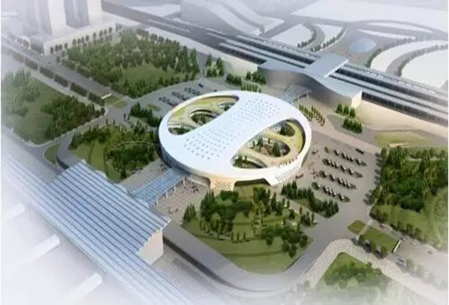 交通中心總建築面積 13.5 萬㎡,其中地上面積 3.8 萬㎡,地下面積 9.7 萬㎡(不含地鐵配套工程面積);交通中心整體建築呈“天圓地方”的造型;地下兩層為270m×217m的長方形,深17米;地上三層為半徑90米的圓形,第四層隻是穹頂造型,建築物總高約24米。 鋼結構總量約為6295t。