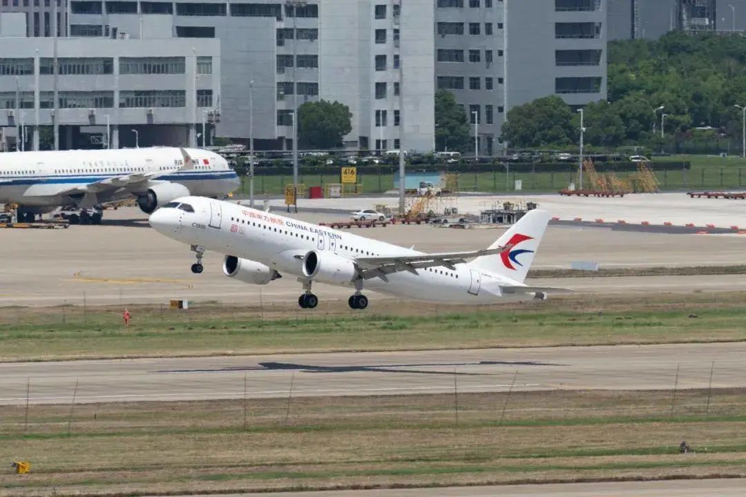 近日,中國東方航空使用中國商飛全球首架交付的C919大型客機,執行MU9191航班,從上海虹橋機場順利起飛,開啟這一機型全球首次商業載客飛行。