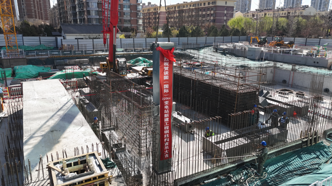 金環承建 | 談固(國際)220千伏變電站新建工程鋼結構首吊完成
