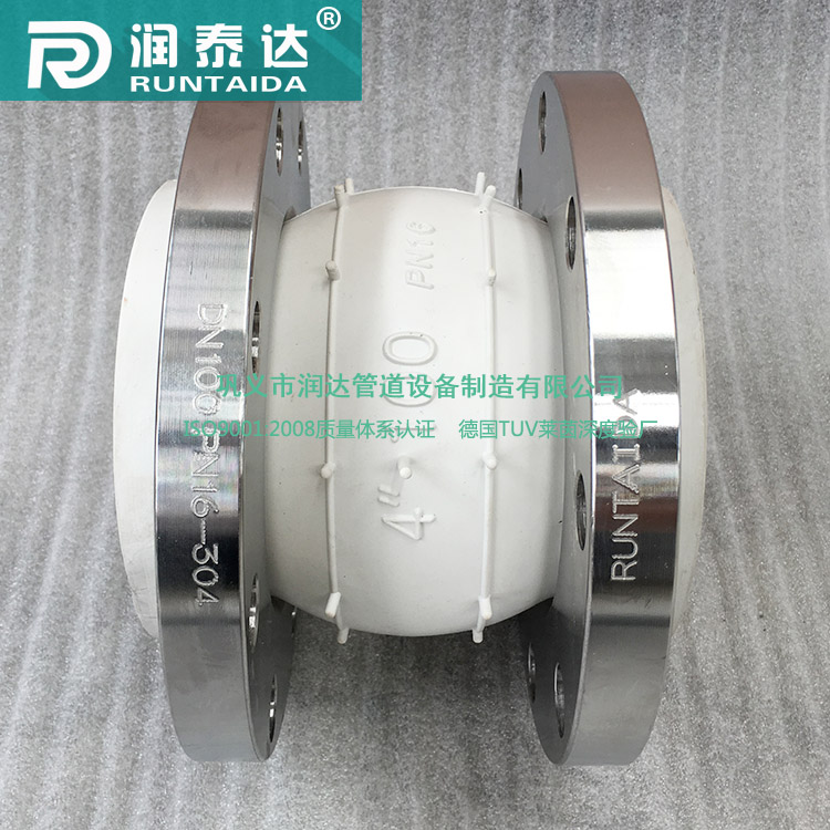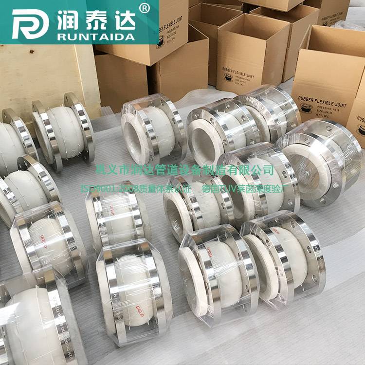 润达管道生产的食品级橡胶接头采用专用的食品级橡胶接头生产流水线,车间的温度,湿度,浮尘都符合的标准规定,产品质量获得了ISO9001-2008产品质量体系的认证,产品本身的伸缩,抗压功能同样十分优良,针对食品管道的振动和热伸缩都能起到良好的位移补偿的功能。