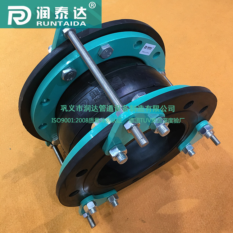 还有一种情况在管道的拐弯处加装橡胶接头,同样还需要加装限位装置,这是因为管道在惯性的影响下会对于拐弯处造成强烈的冲击并产品较强的影响,通过加装支墩和支架并且产品自身配置的限位装置从而确保弯管处的运行正常。大家可以根据实际工况情况来加限位装置。