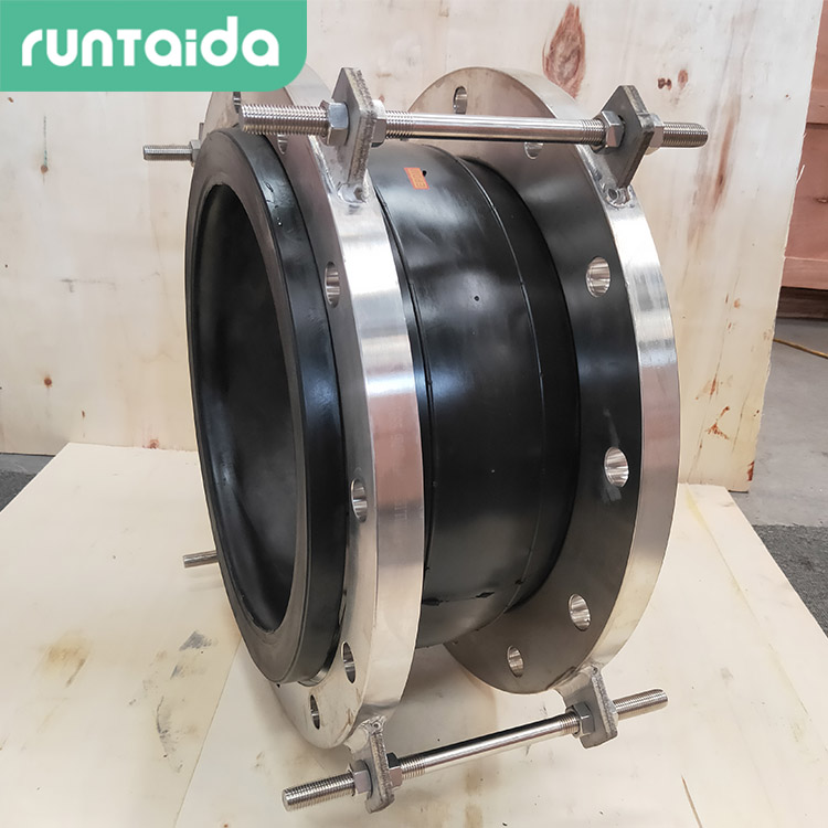 5.防拉脱限位橡胶软接头是在法兰的边缘焊接具有限位功能的耳板,上下对应,使用螺栓穿过,从而达到限位功能。